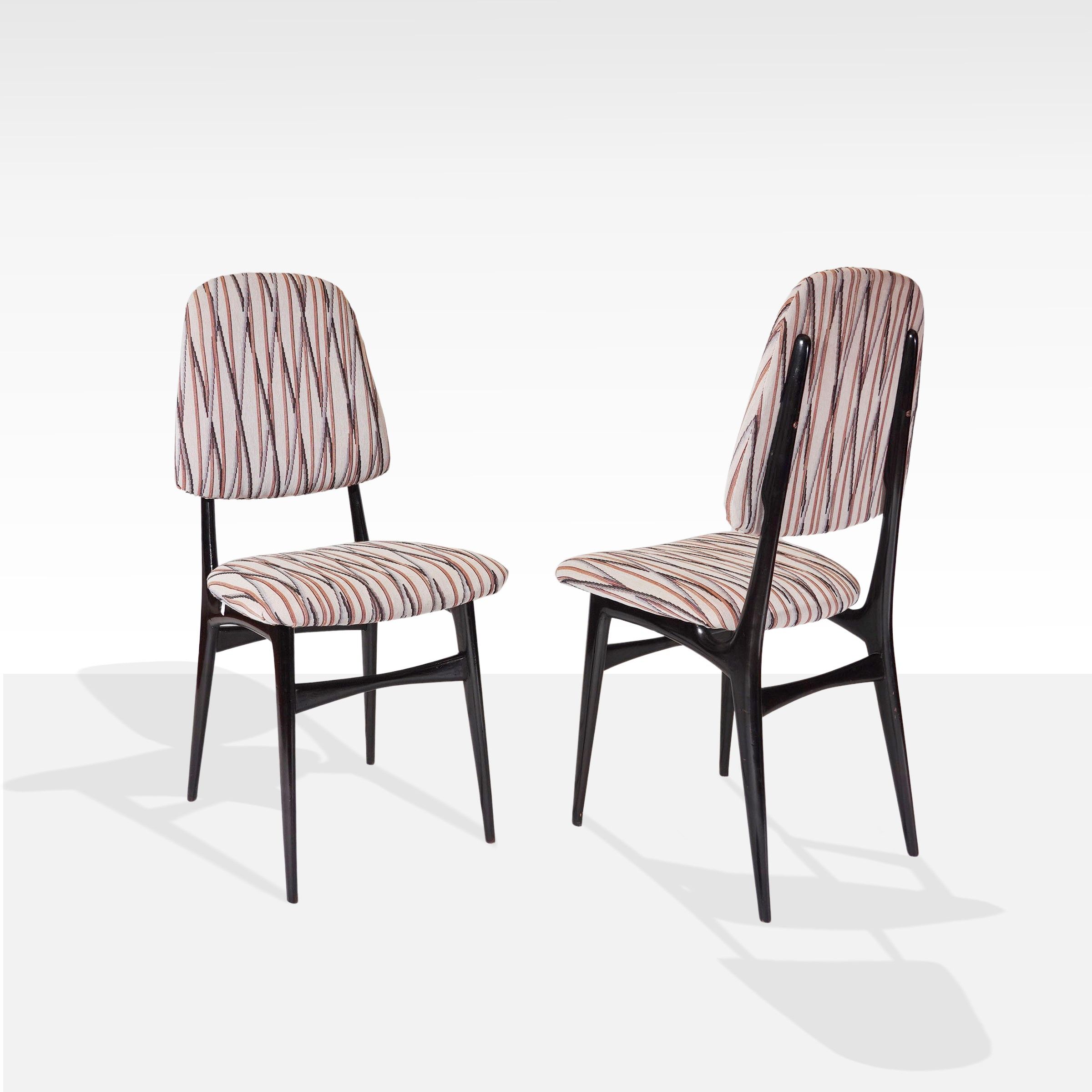 anni 50 quattro sedie in legno dipinto e tessuto imbottito, lievi usure