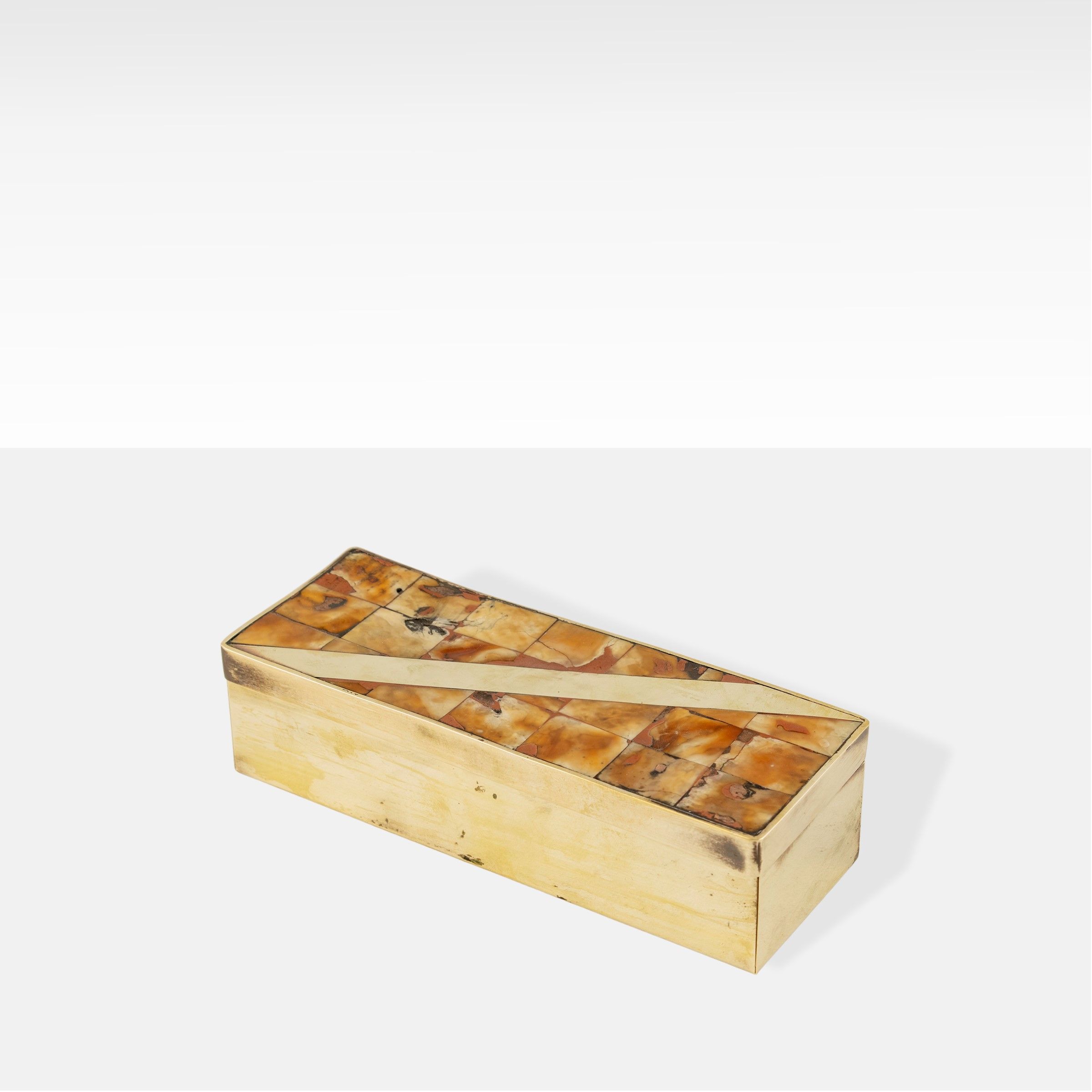 anni 70 scatola rettangolare in ottone e marmo, lievi usure