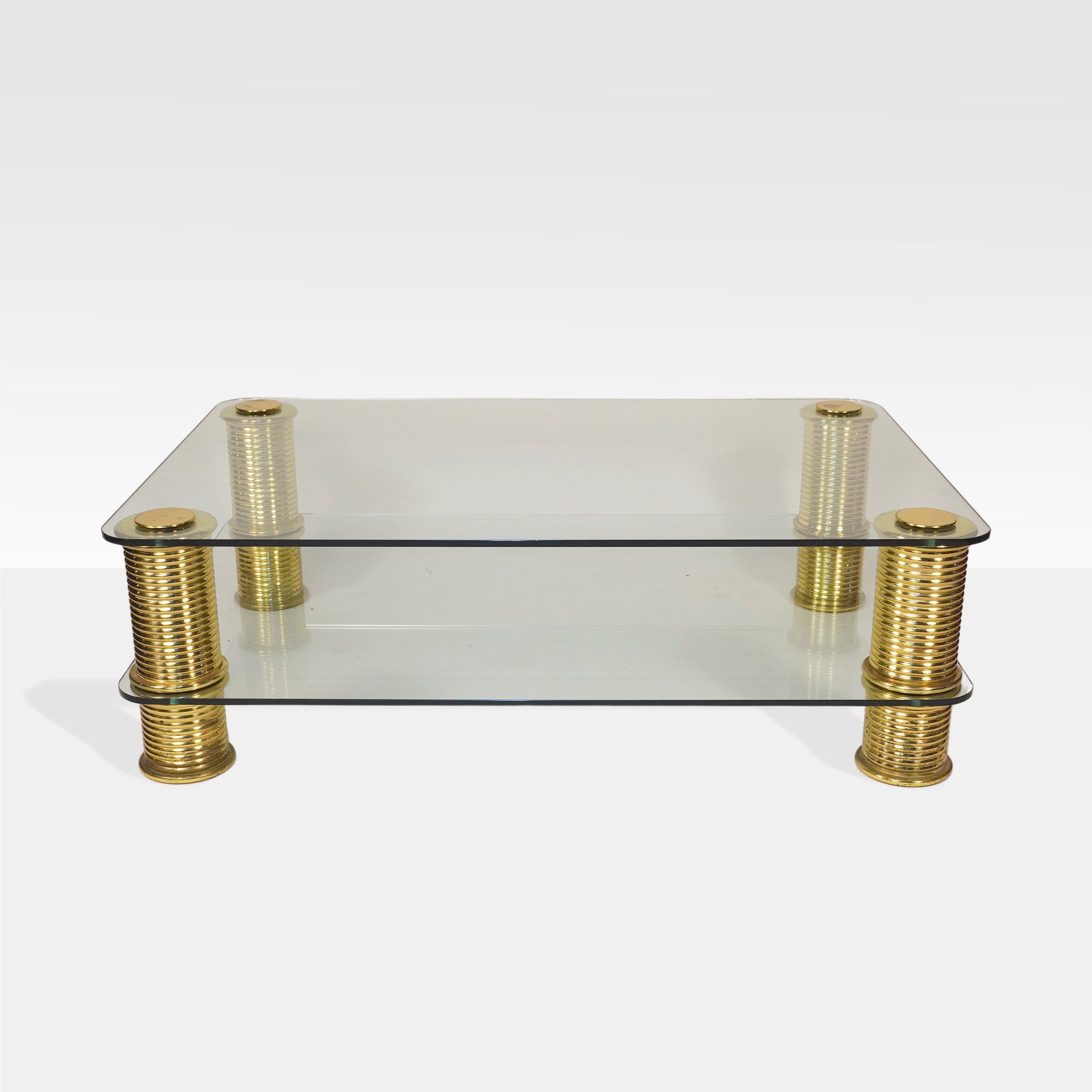 anni 80 tavolino basso in vetro trasparente ed ottone