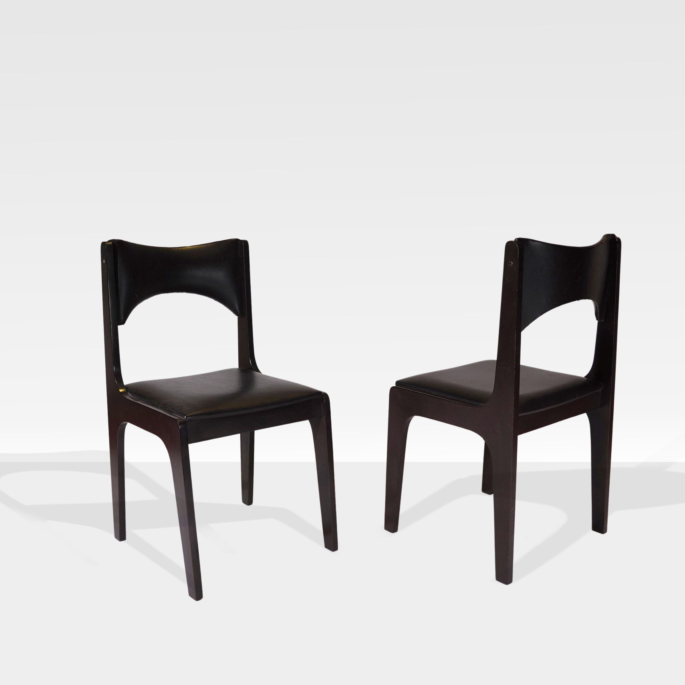 anni 60 sei sedie in legno dipinto e similpelle imbottita, lievi usure