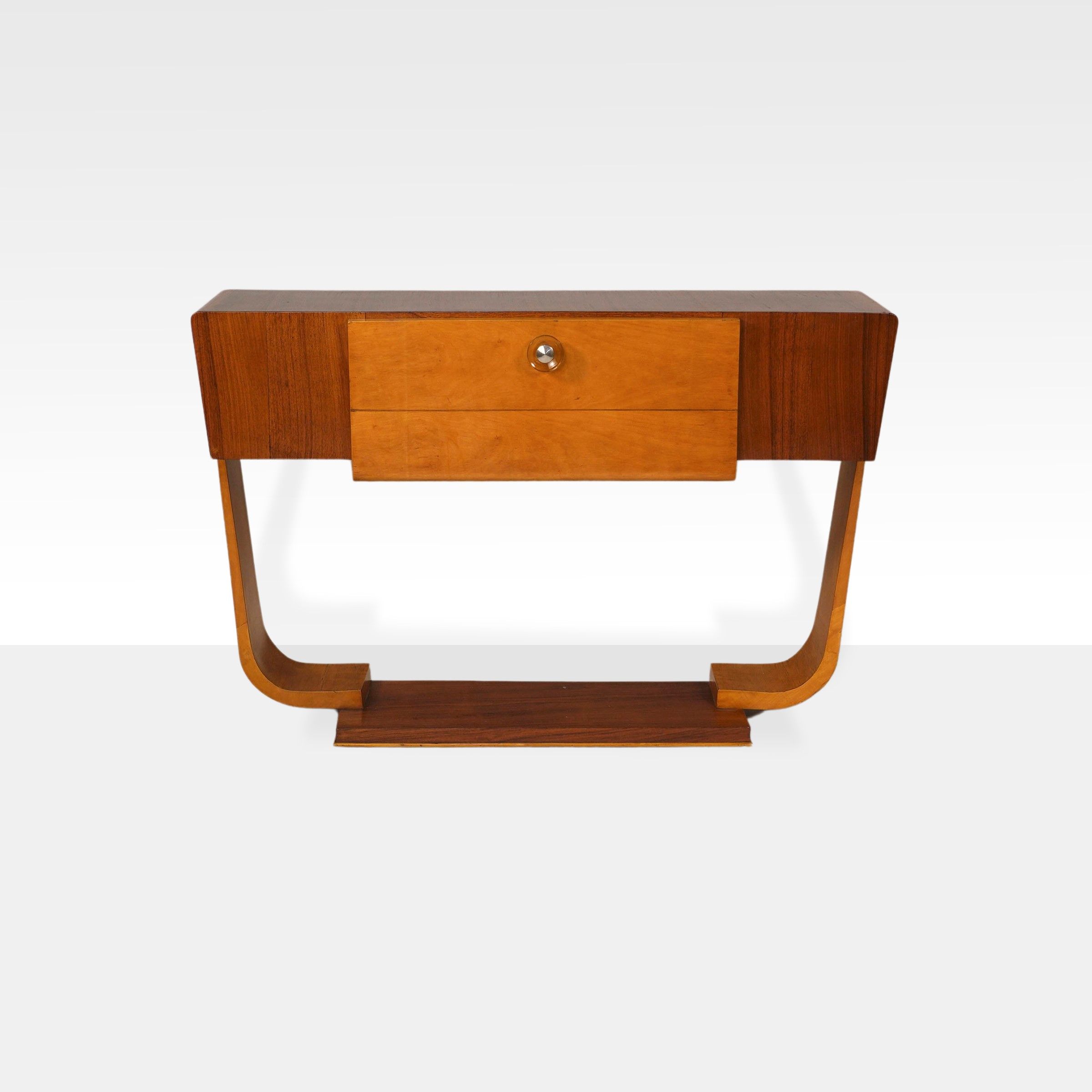 anni 40 console in legno, ottone e plexiglass, lievi usure