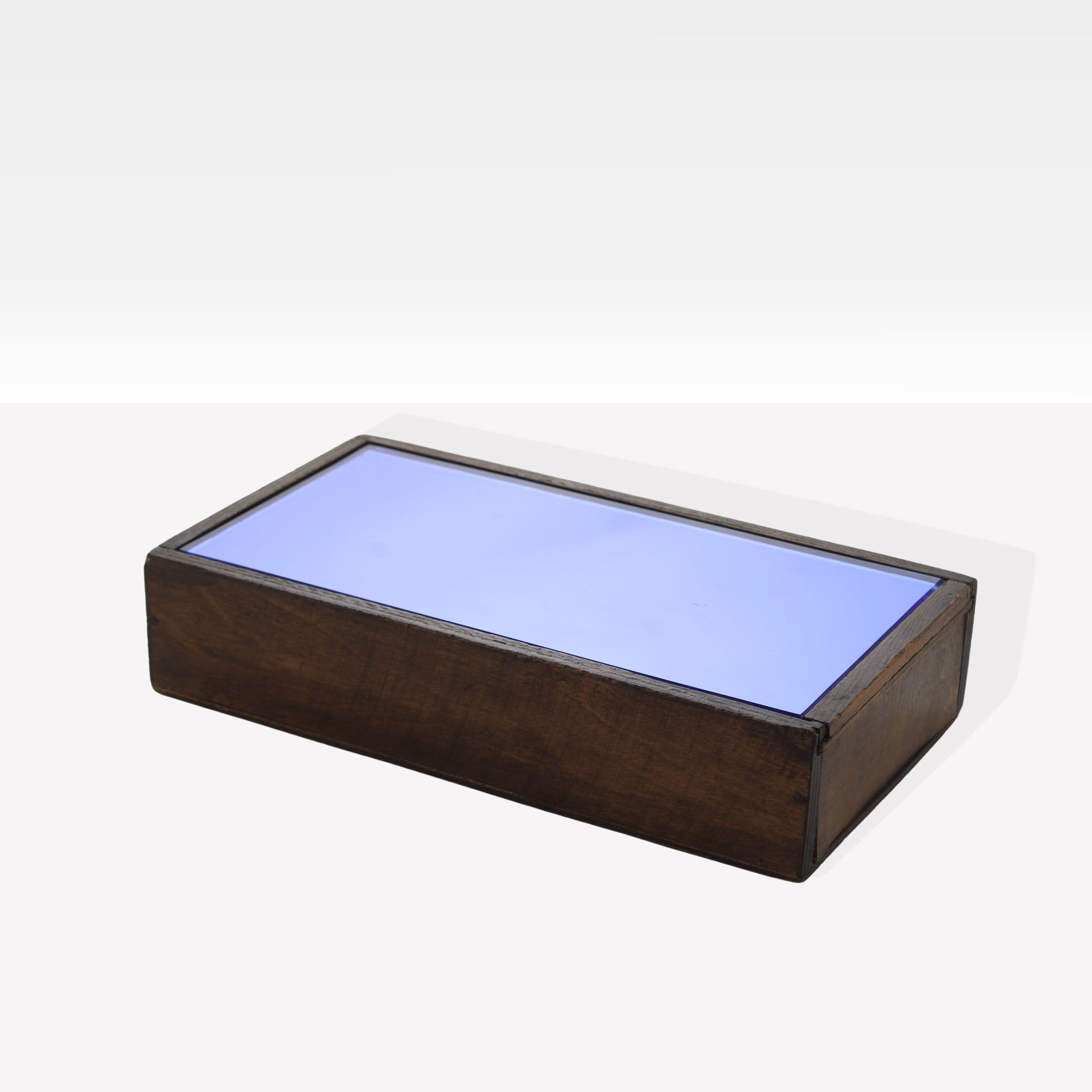 anni 40 scatola in legno, vetro specchiato e colorato, lievi difetti