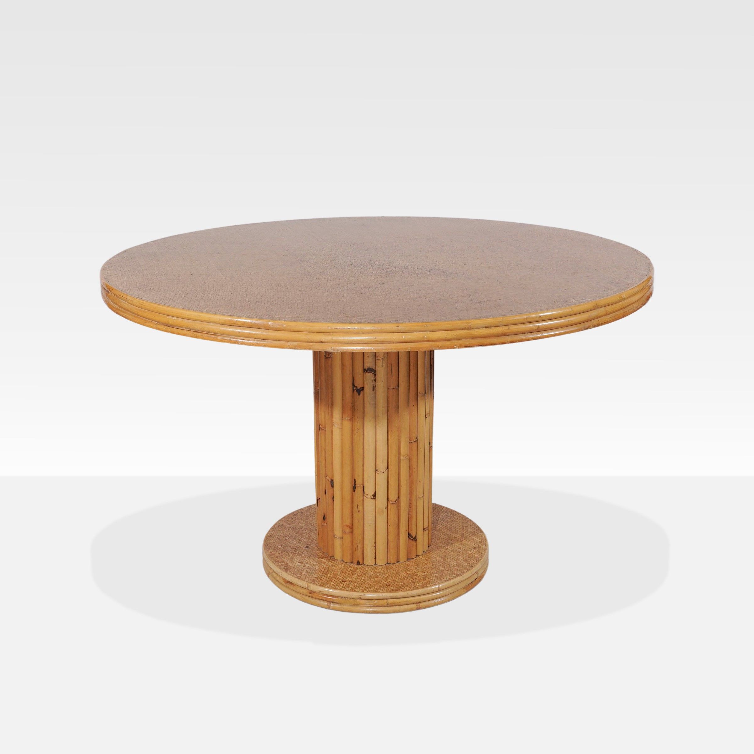 anni 70 tavolo circolare in midollino e bambù, lievi usure