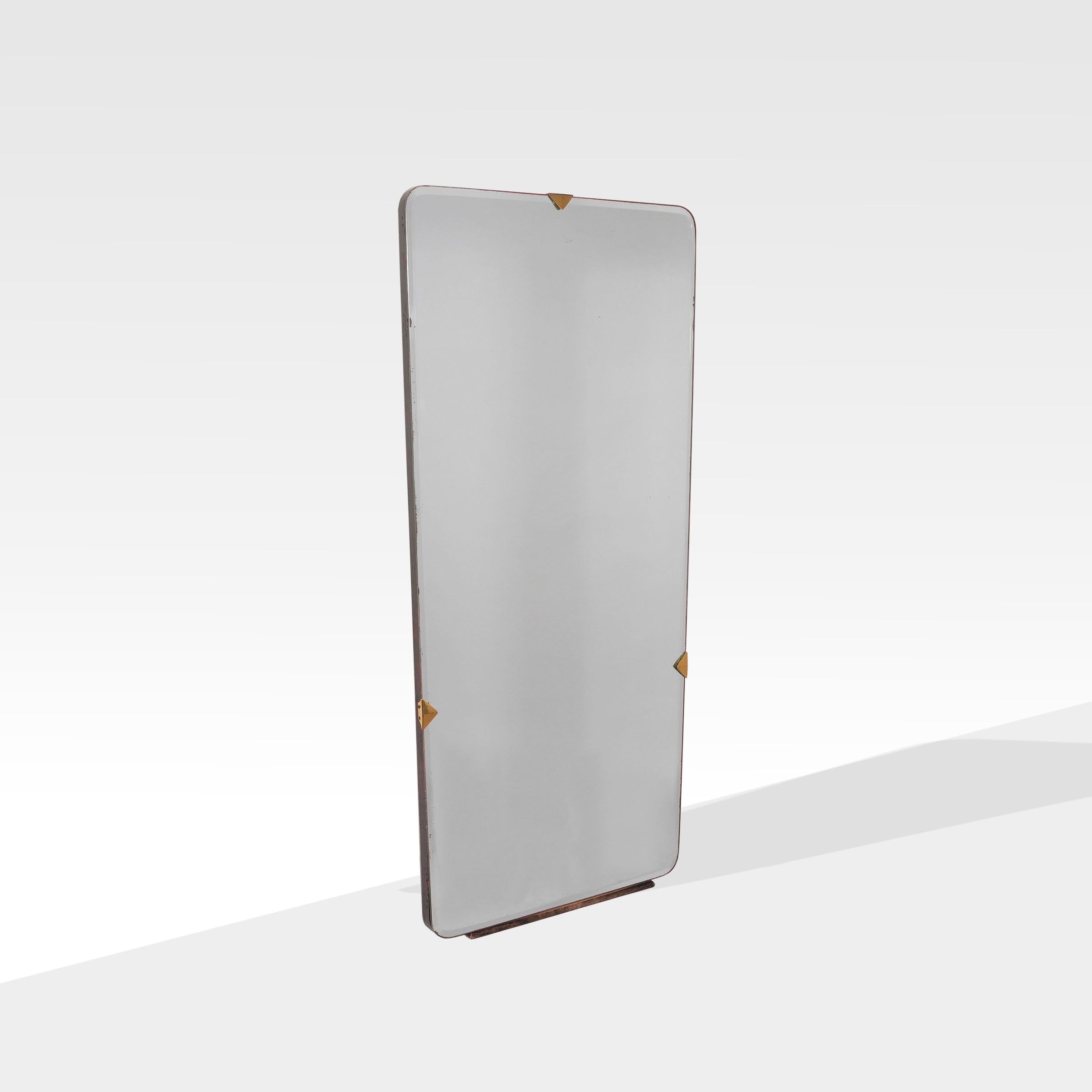 anni 50 specchio da parete in legno, vetro specchiato ed ottone, lievi usure