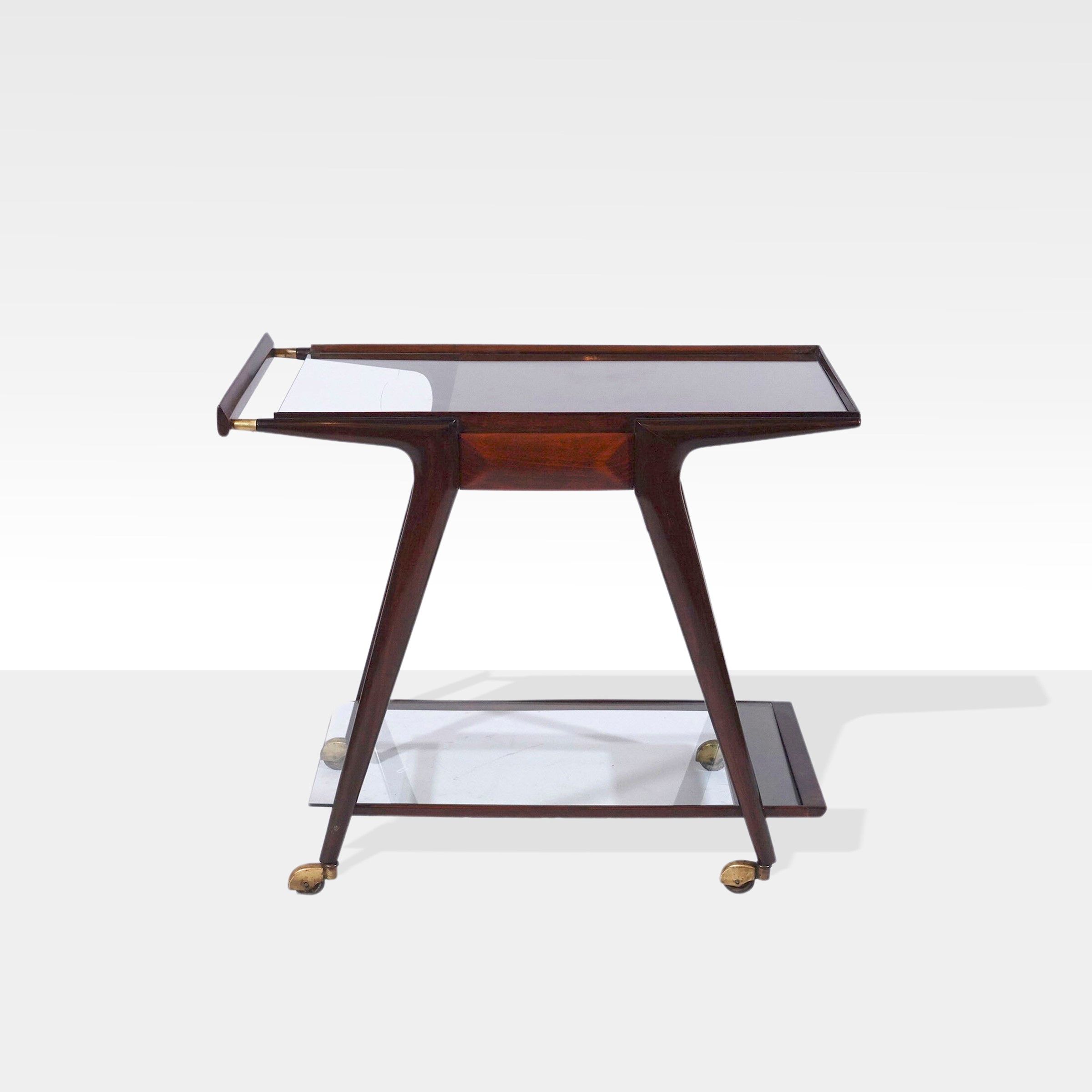 anni 50 carrello in legno, vetro trasparente ed ottone, lievi usure