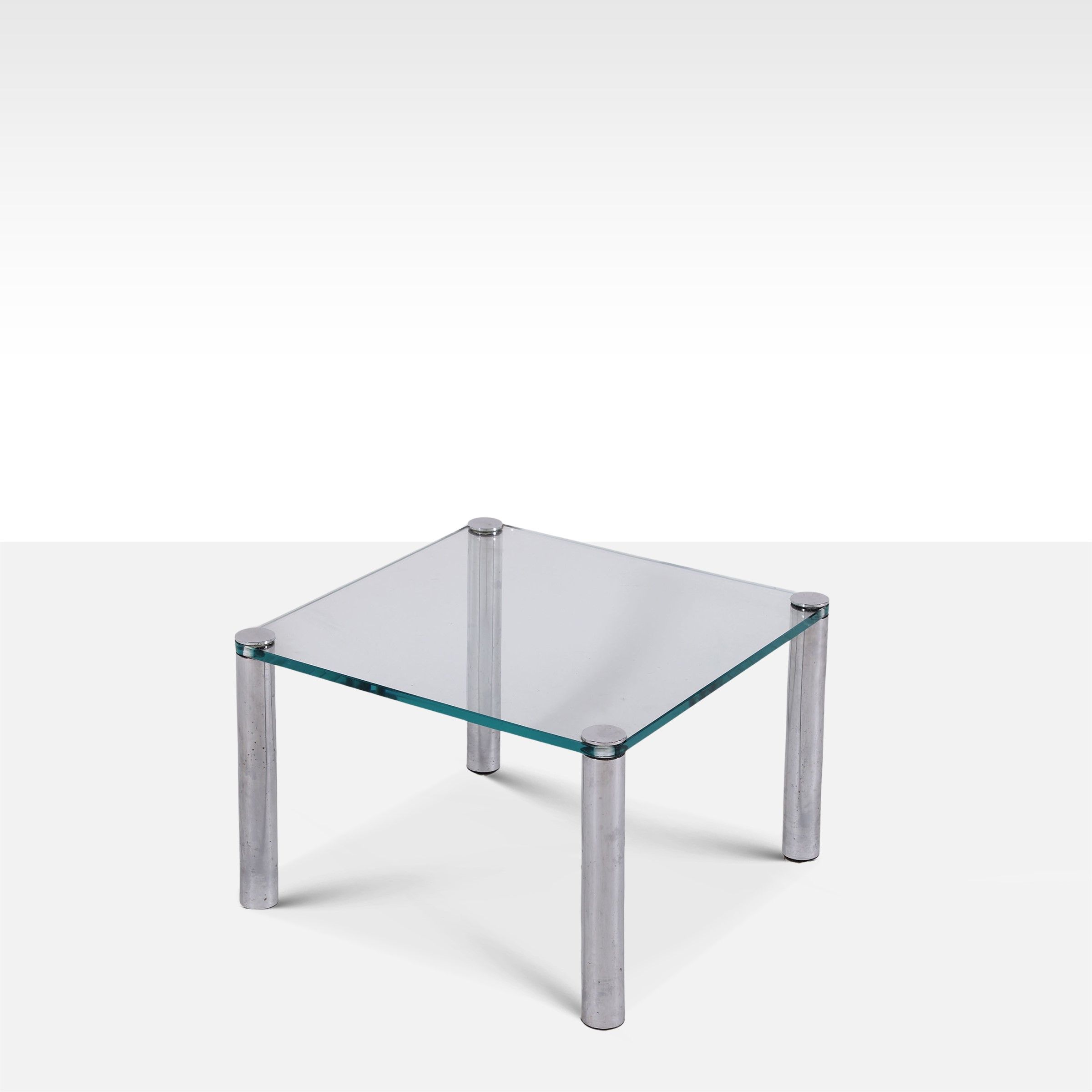 anni 60 tavolino basso in metallo cromato e vetro trasparente, lievi usure