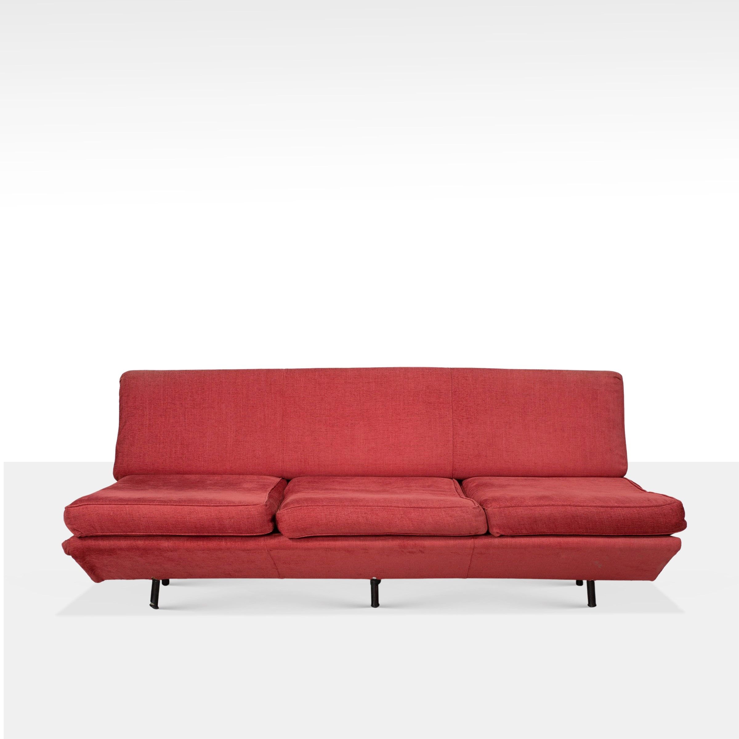 Italia, anni 50 divano mod. Sleep o matic in metallo verniciato e tessuto imbottito