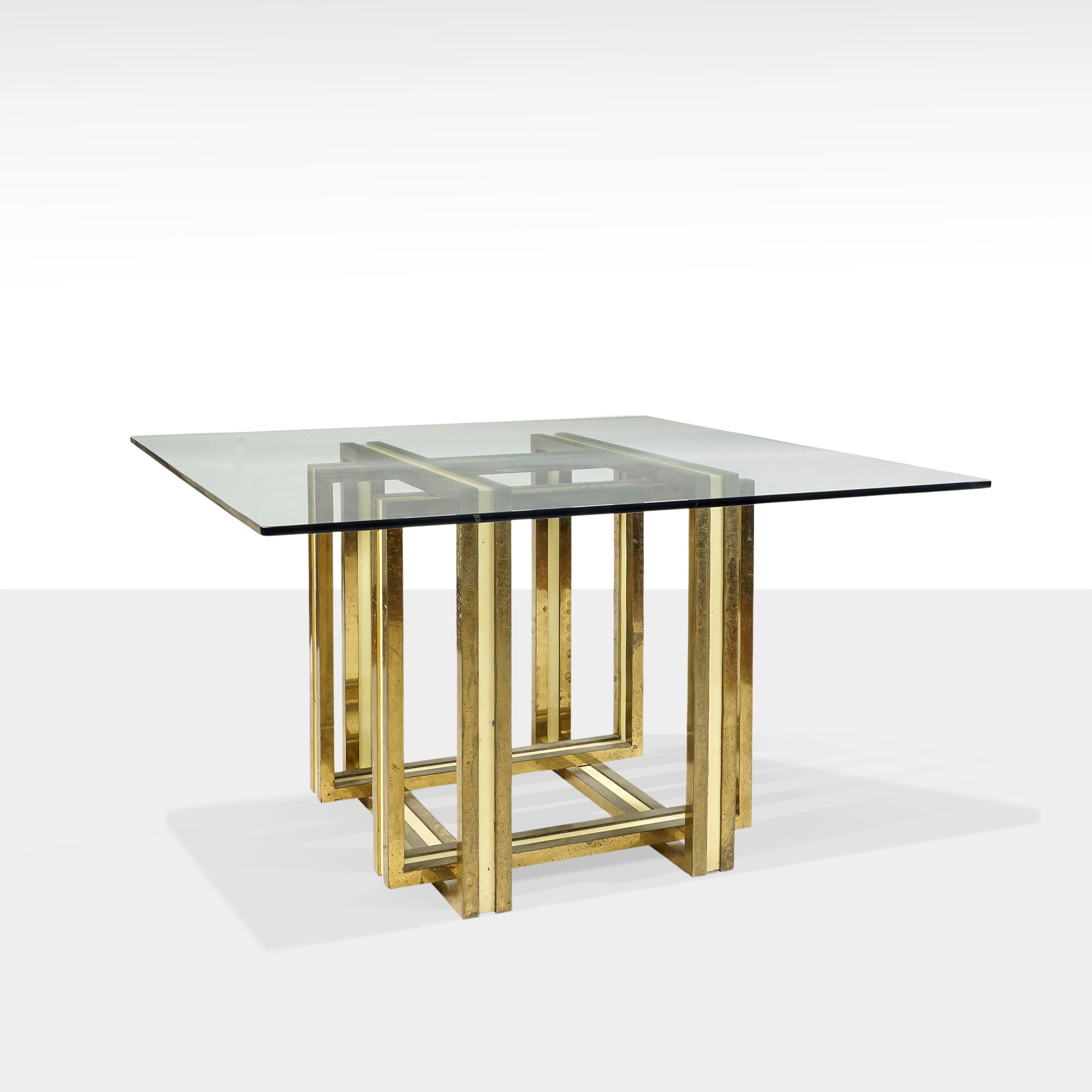 Italia, anni 70 tavolo in ottone, metallo verniciato e vetro, usure