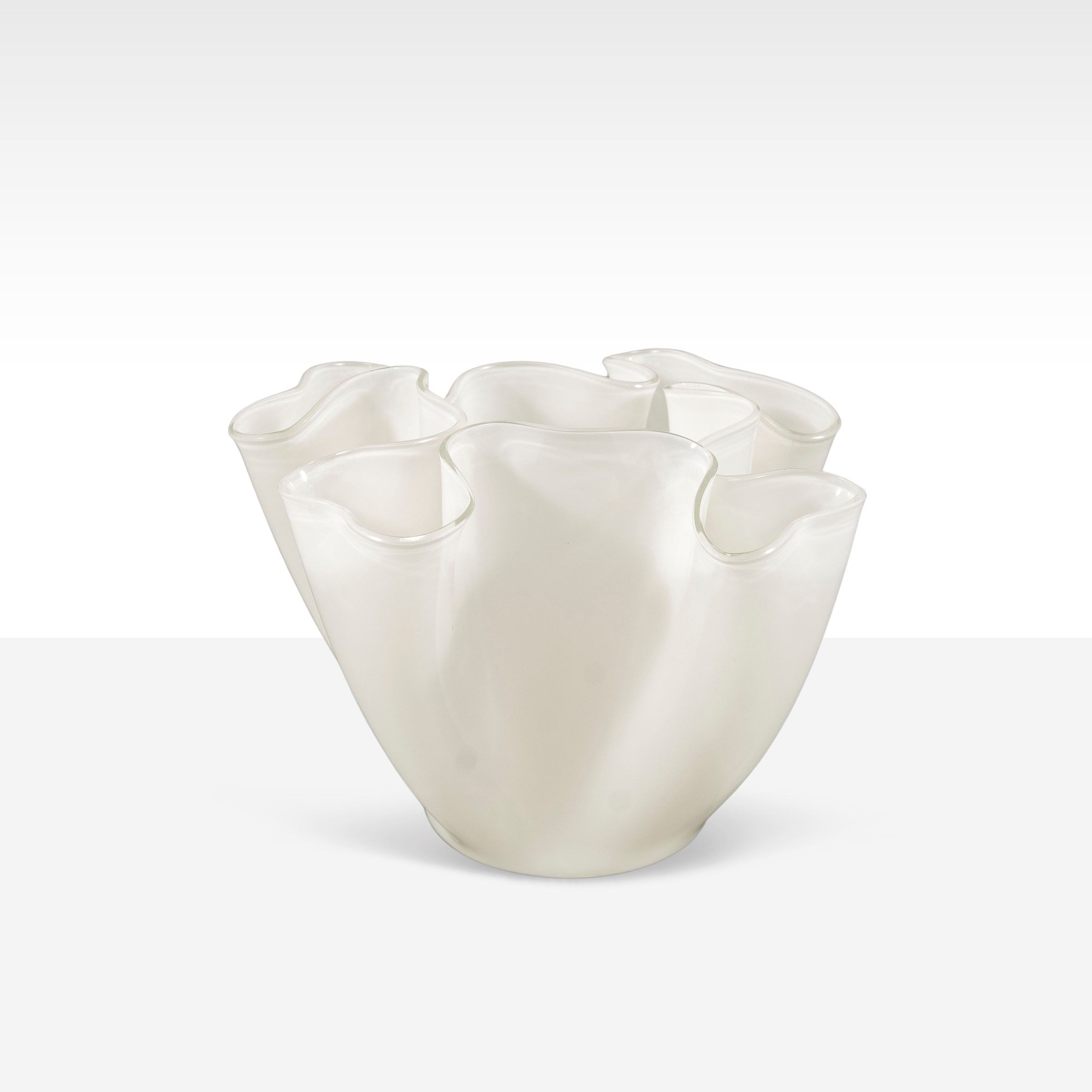 Italia, anni 60 vaso mod. Cartoccio in vetro lattimo