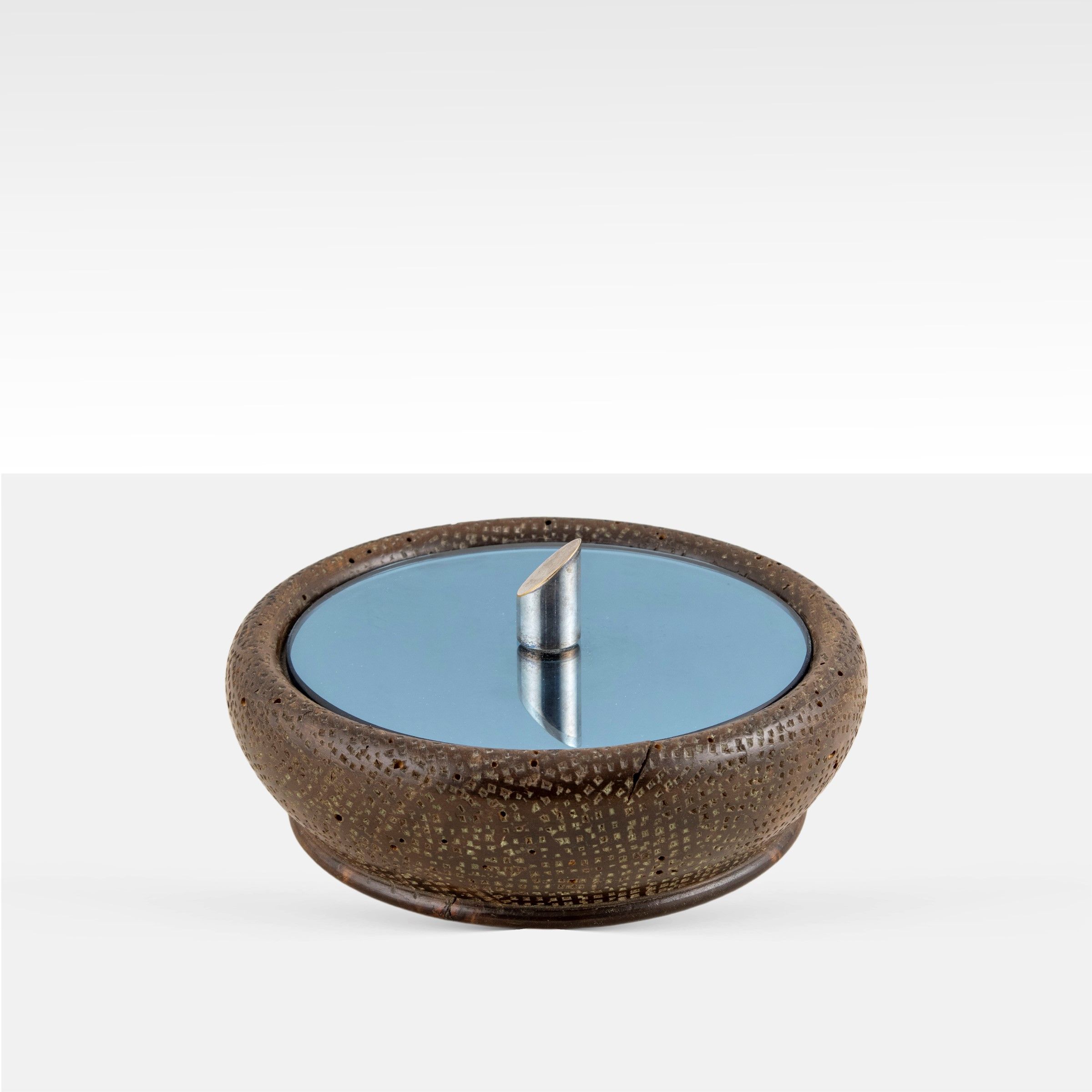 Italia, anni 40 scatola in legno, vetro specchiato colorato ed ottone