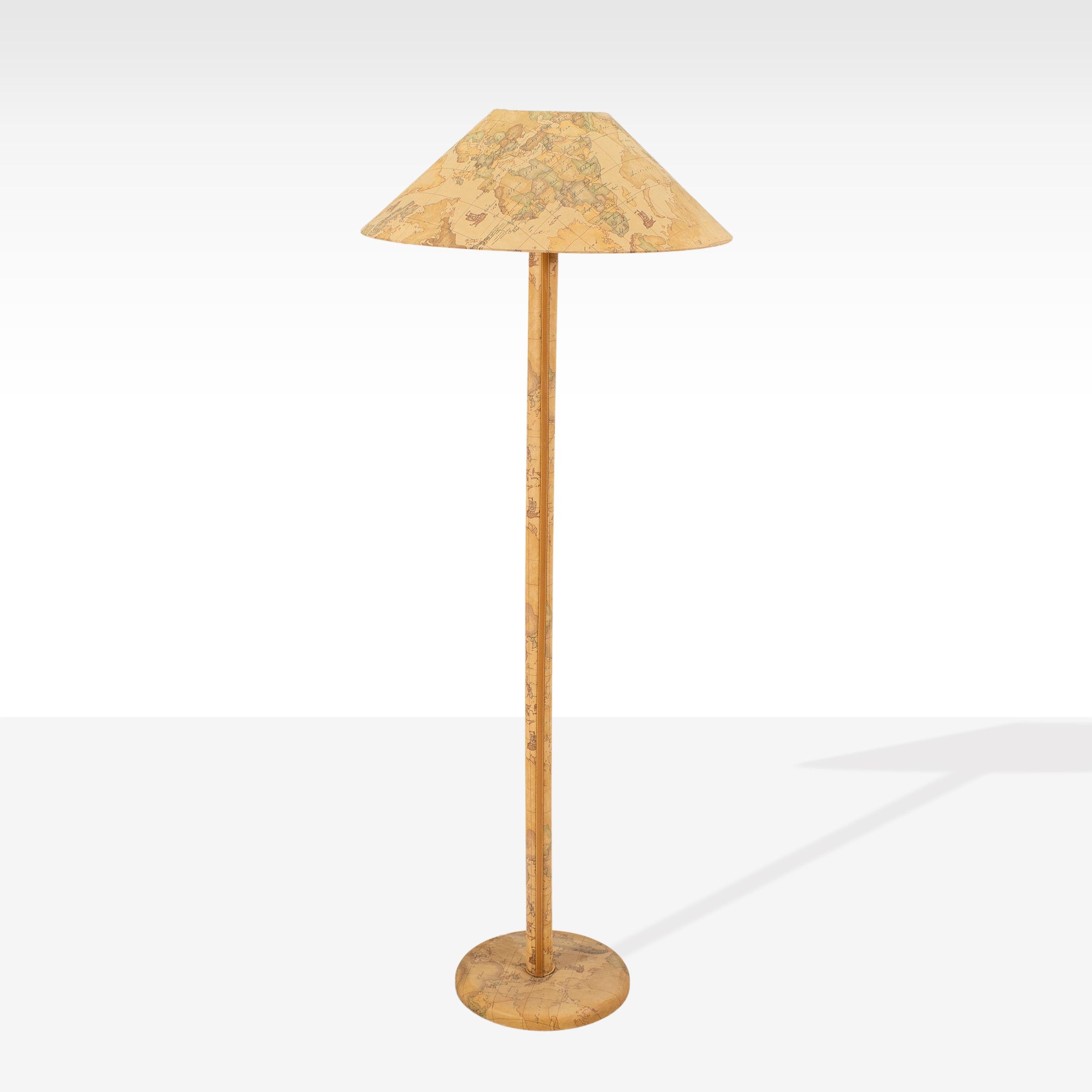 Italia, anni 90 lampada da terra in pelle, completa di paralume, lievi usure