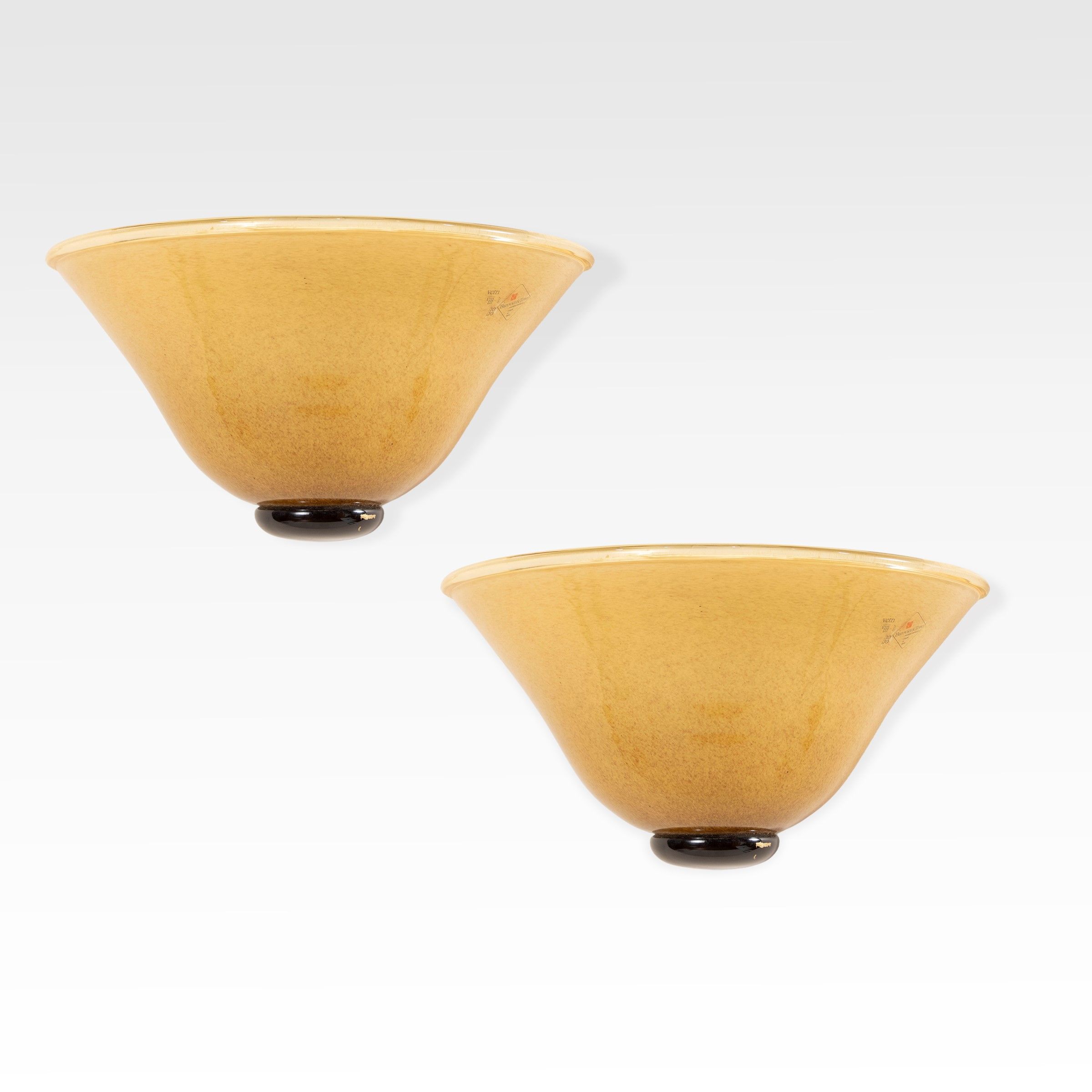 Murano, anni 80 coppia di lampade da parete in vetro soffiato, etichetta della produzione, lievi difetti