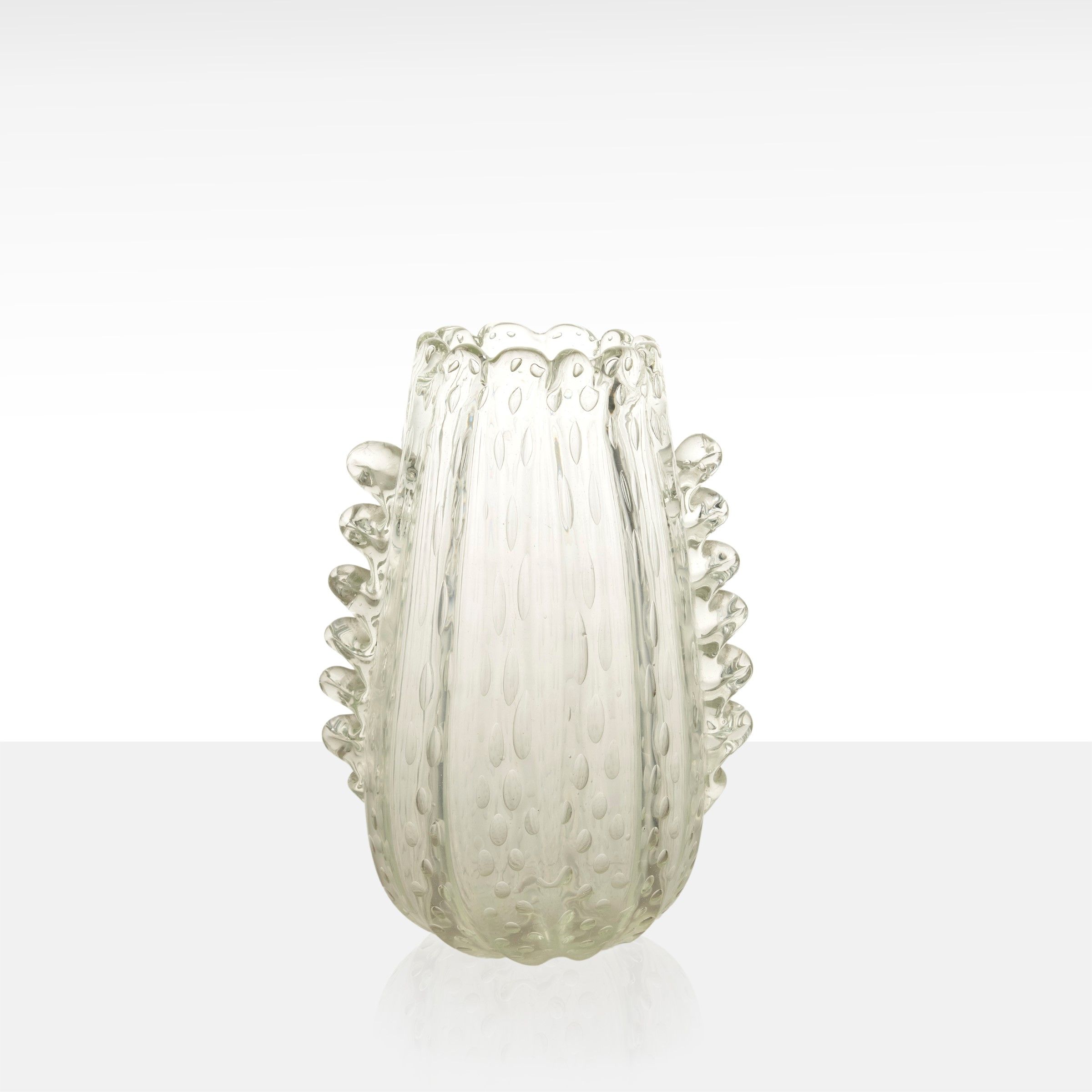 Murano, anni 60 vaso in vetro trasparente con inclusione di bolle d'aria, anse applicate