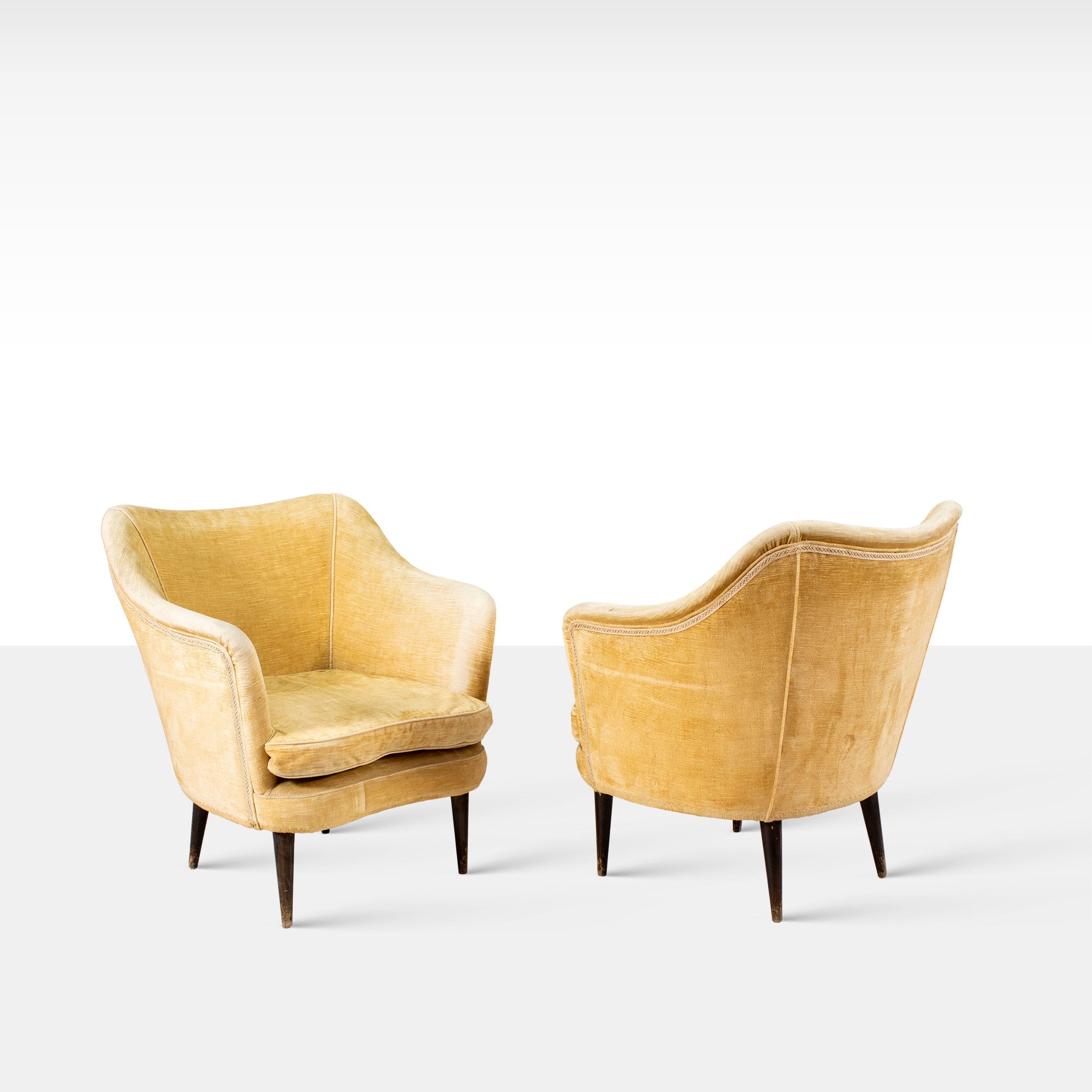 Italia, anni 50 coppia di poltrone in legno e tessuto imbottito, lievi usure