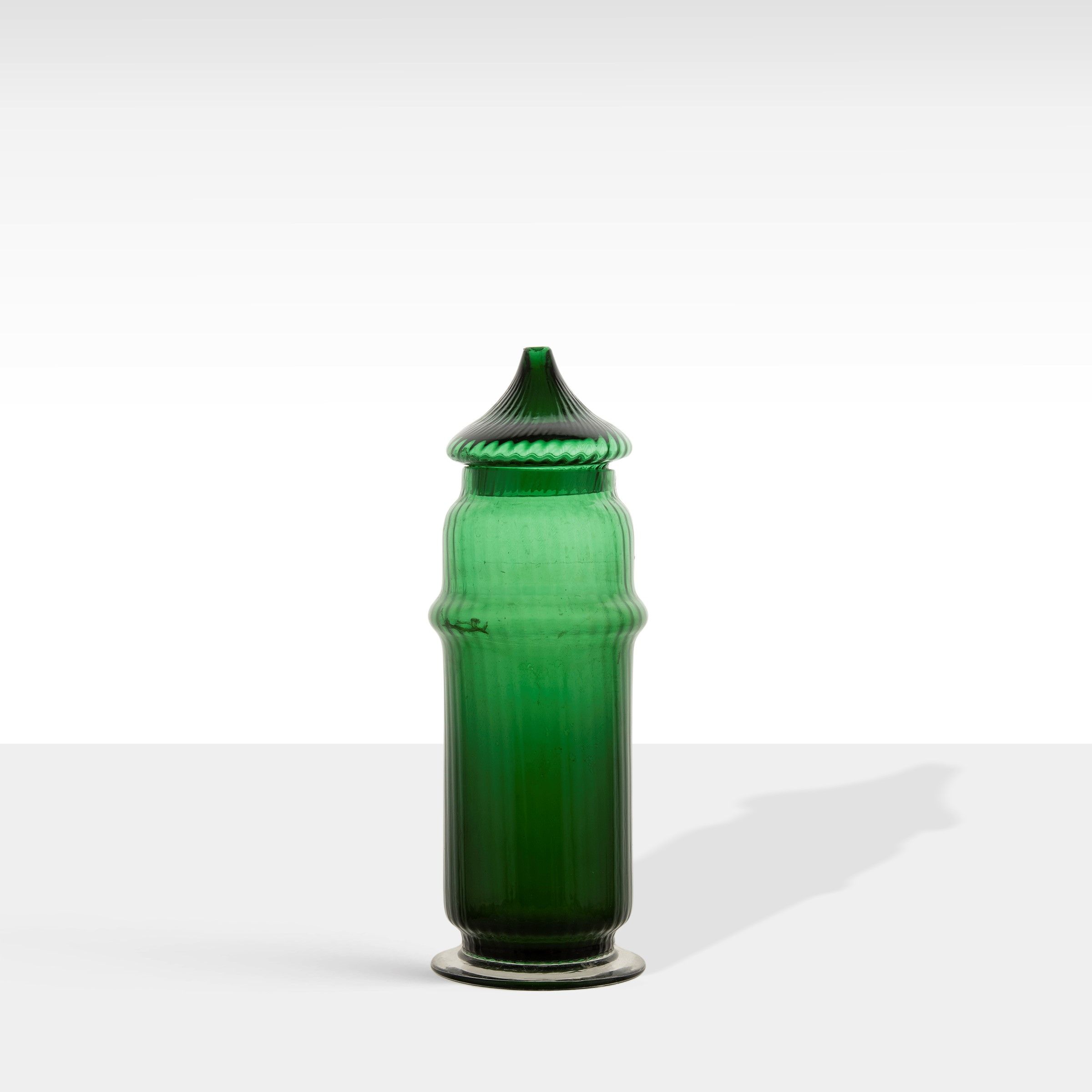 Murano, anni 60 bottiglia in vetro soffiato colorato, etichetta della produzione, lievi difetti