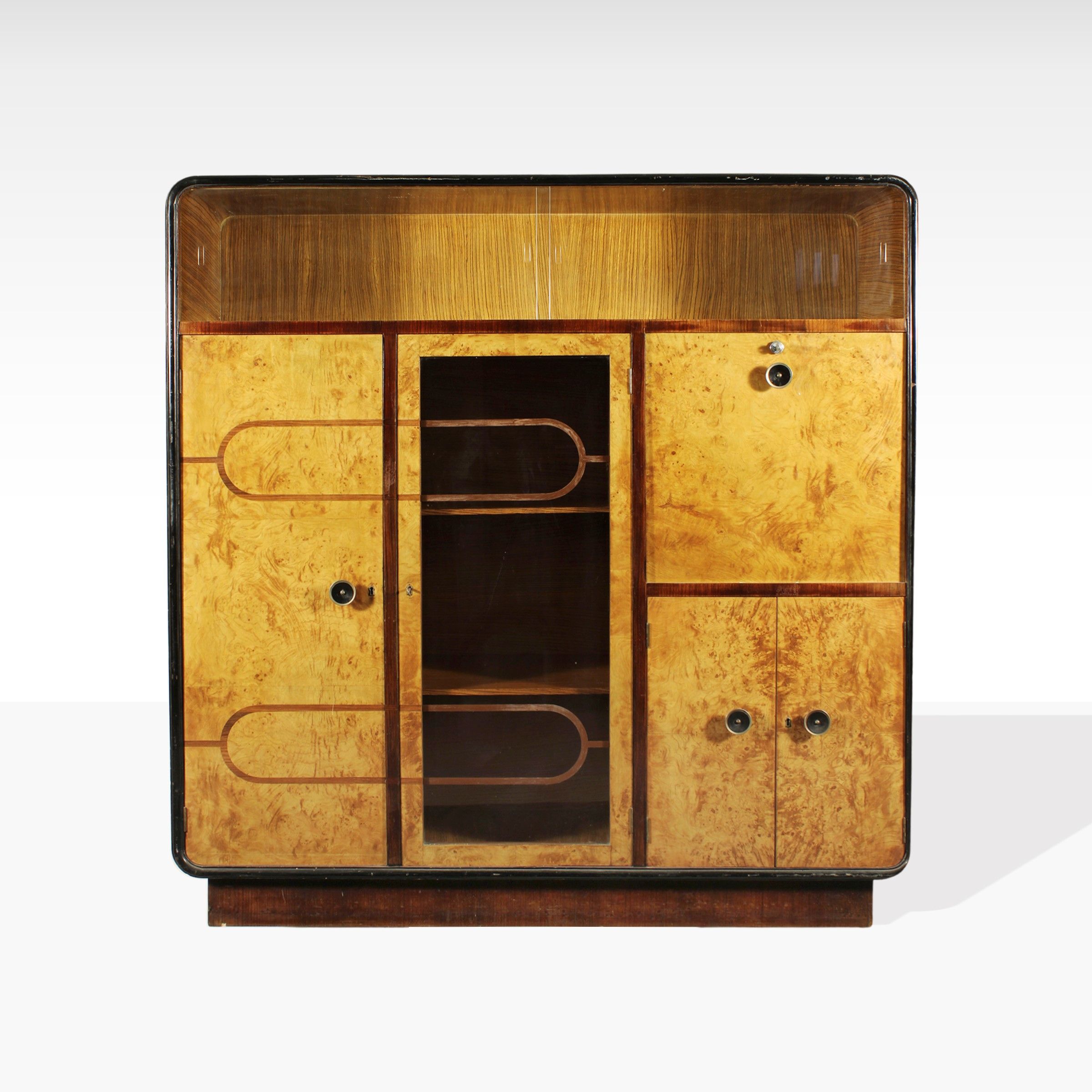 Italia, anni 40-50 mobile Decò in radica, ottone e vetro trasparente, etichetta della produzione, usure. Bibliografia: catalogo ufficiale Saisa