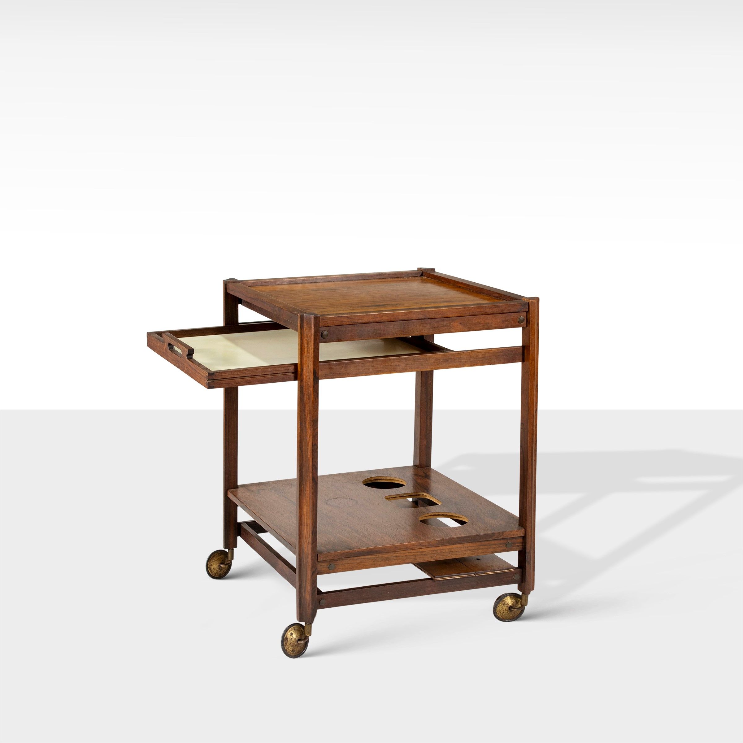 Italia, anni 60 carrello portavivande in legno ed ottone, lievi usure