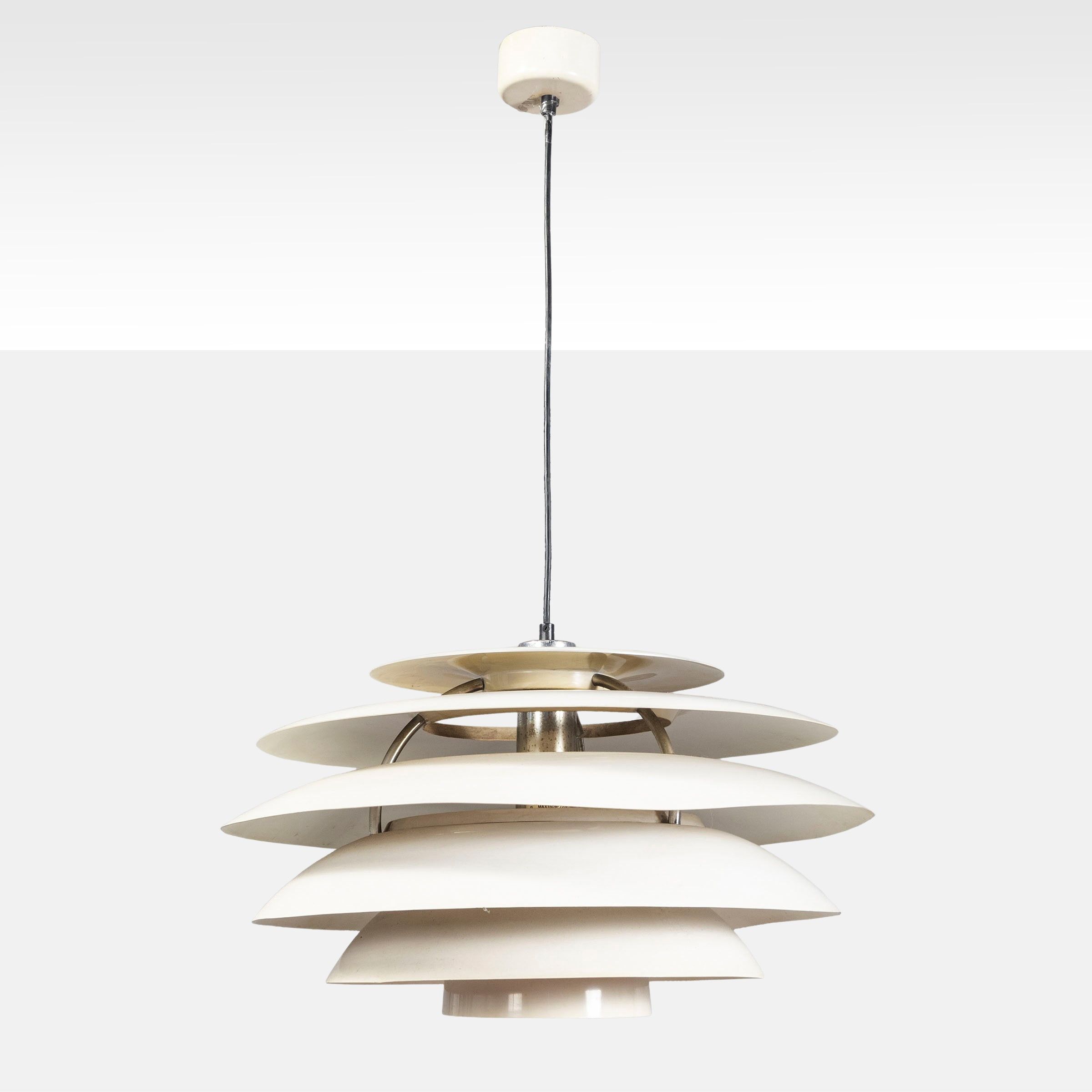 Italia, anni 60-70 lampada a sospensione in metallo verniciato, etichetta della produzione