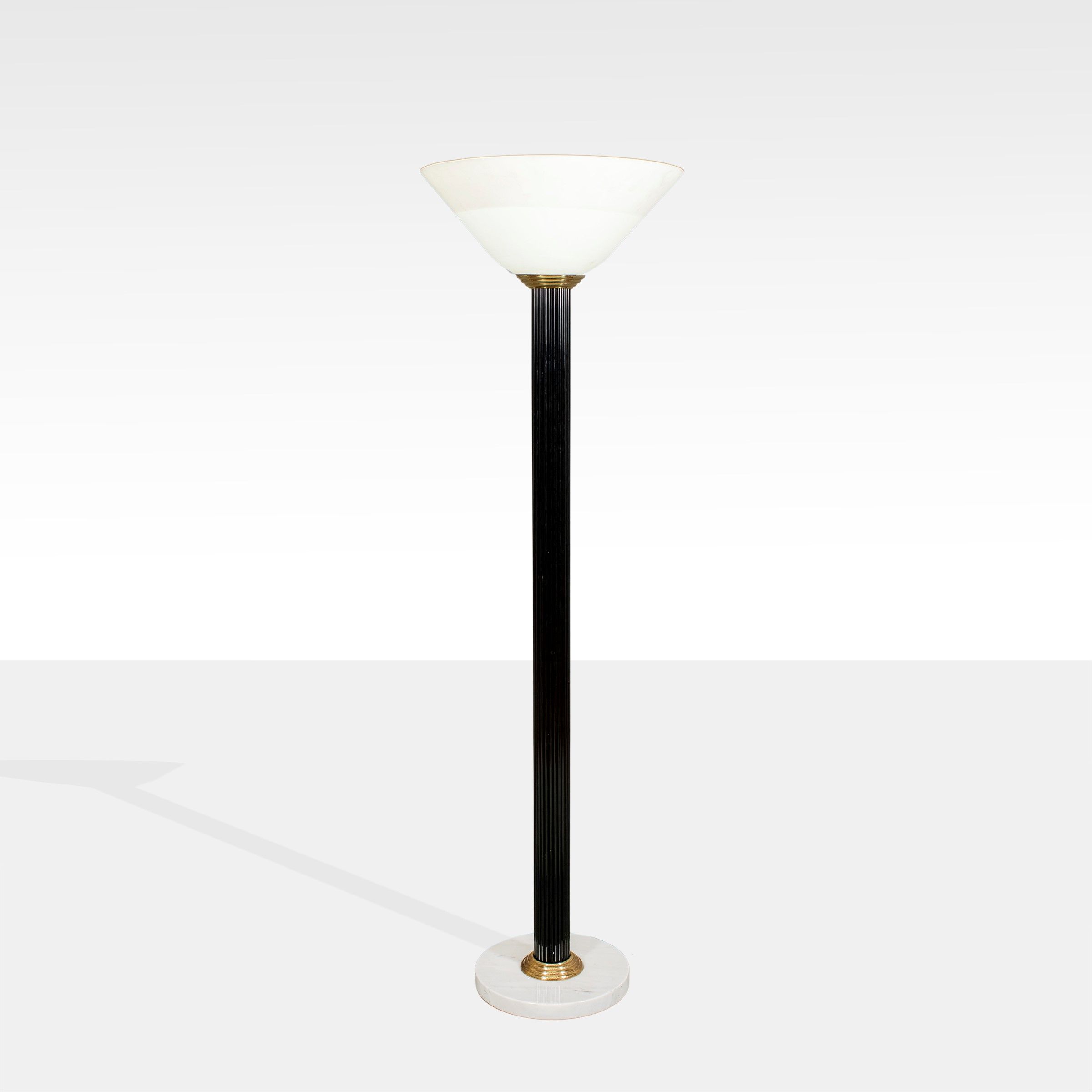 Murano, anni 80 lampada da terra in resina, vetro, ottone e base in marmo, etichetta della produzione