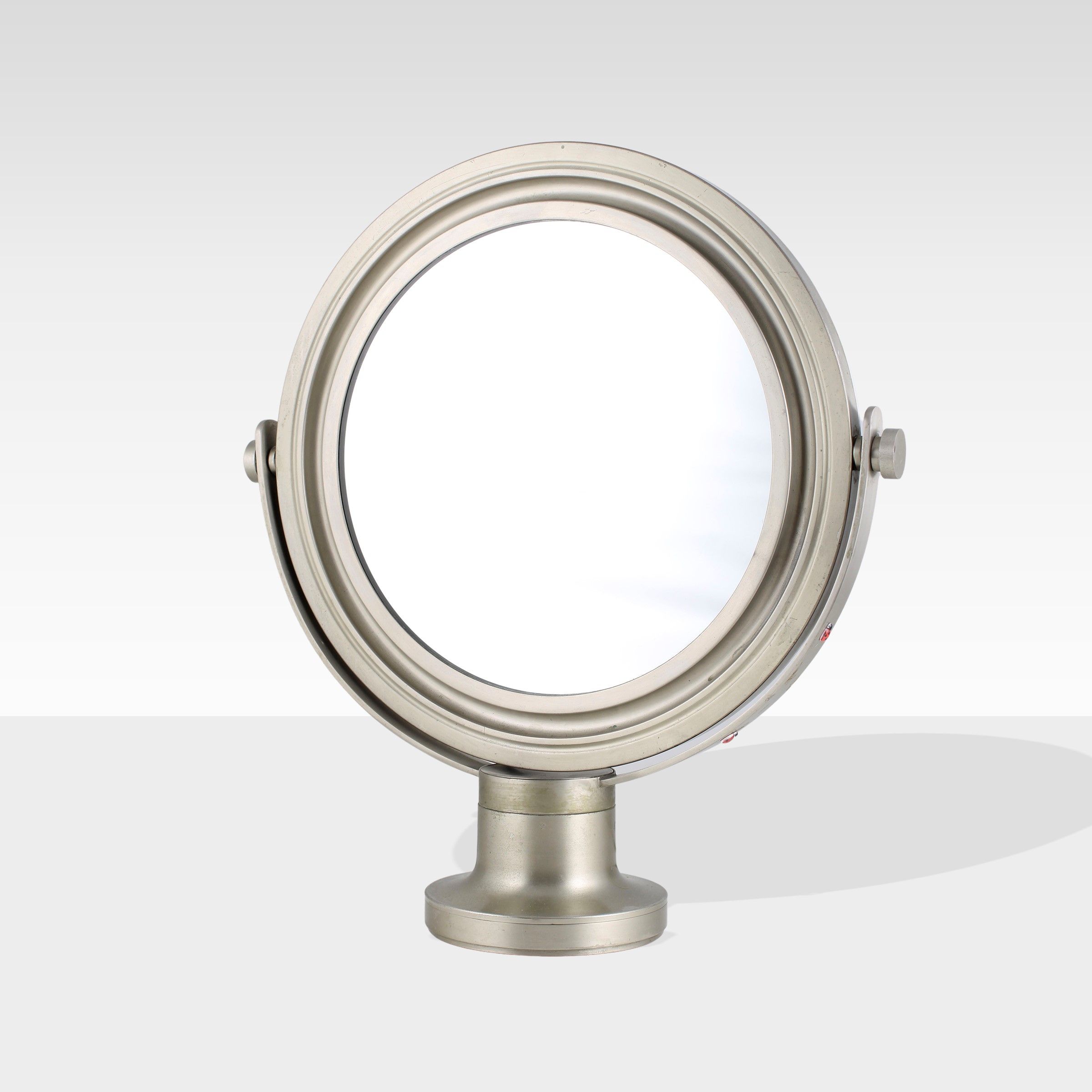 Italia, anni 70 specchio da tavolo mod. Narciso in acciaio satinato e vetro specchiato, lievi usure