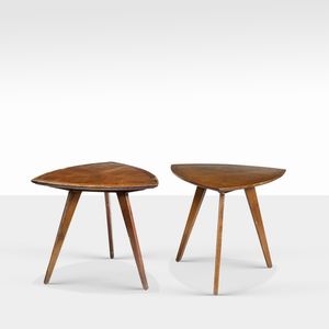 50x55x55 cm. anni 70 coppia di tavolini in legno e vetro, lievi usure