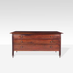 81x145x54 cm. Italia, 1963 circa cassettiera mod. D1554 in legno ed ottone, lievi usure. Bibliografia: Domus 410,Gennaio [..]