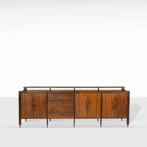 86x230x48 cm. Italia, 1964 sideboard in legno ed ottone, lievi difetti. Bibliografia: Domus n. 410, gennaio 1964; [..]