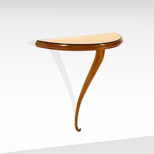 53x54x21 cm. Italia, anni 50 piccola console da parete in legno e vetro specchiato