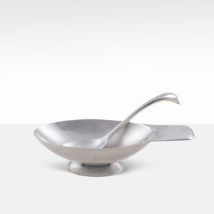 6x21x10 cm. Francia, anni 30-40 salsiera con colino, collezione Gallia, in metallo argentato, marchio della pr [..]