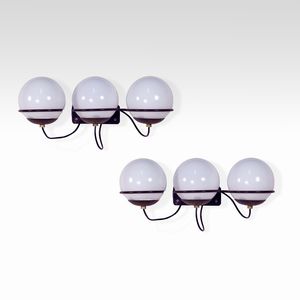 20x46x15 cm. Italia, 1959 coppia di lampade da parete mod. 237/3 in metallo verniciato, alluminio e vetro lattimo, [..]