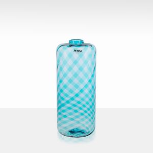 h. 27,5 cm. Murano, 1984 vaso a canne ritorte color zaffiro ed acquamare, firma incisa