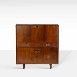 120x110x50 cm. Italia, anni 60 credenza in legno, etichetta della produzione, lievi usure