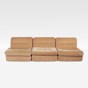 70x78x86 cm. Italia, 1966 tre poltrone mod. Amanta in fiberglass e tessuto imbottito, marchio ed etichetta della [..]