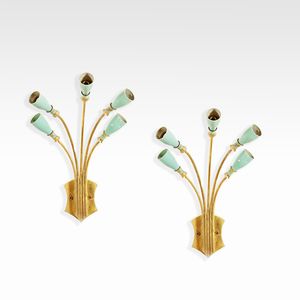 40x26x20 cm. Italia, anni 50 coppia di lampade da parete in ottone e metallo verniciato, usure