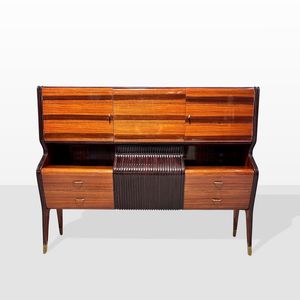 130x99x45 cm. Italia, anni 50 mobile ribalta in legno ed ottone