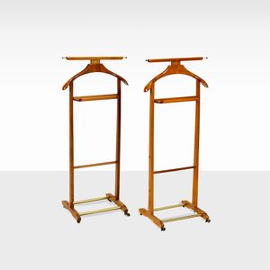 105x45x34 cm. Italia, anni 50 coppia di servomuto in legno ed ottone, marchio della produzione, lievi usure