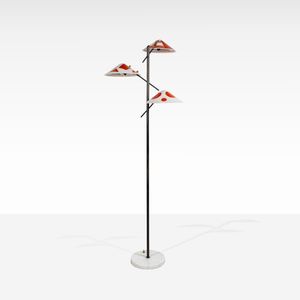 h. 175 cm. Italia, anni 50 lampada da terra in metallo verniciato, perspex, ottone e base in marmo, lievi usur [..]