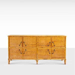 115x223x45 cm. anni 70-80 credenza in midollino, bambù e metallo verniciato
