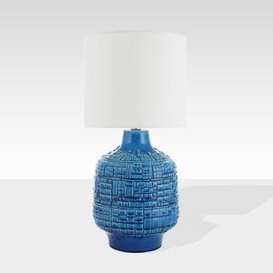 h. 55 cm. Italia, anni 60 lampada da tavolo in ceramica, completa di paralume, marchio della produzione