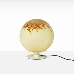 36x30 cm. Murano, anni 70 lampada da tavolo serie Hydra in metallo verniciato, vetro opalino e vetro colorato, [..]