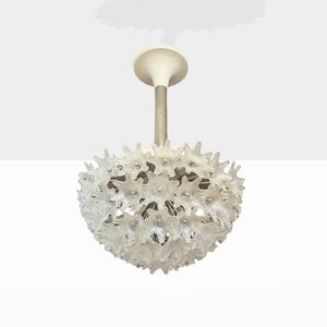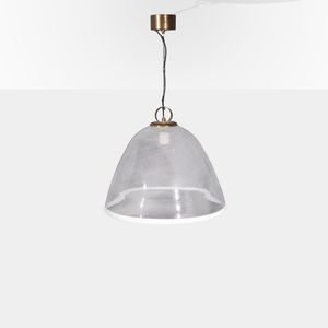 90x60 cm. Murano, anni 60 lampada a sospensione in vetro trasparente e metallo, lievi usure