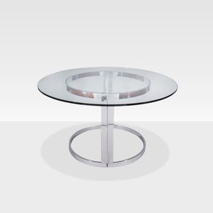 72x130x130 cm. Italia, anni 70 tavolo circolare in metallo cromato e vetro trasparente