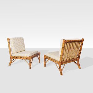 76x70x70 cm. anni 70 coppia di poltrone in bambù e tessuto imbottito