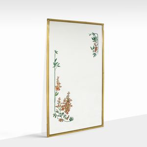 135x60 cm. anni 70 specchio da parete in vetro specchiato e vetro colorato