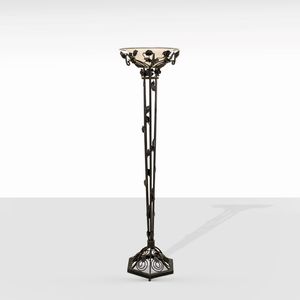h. 175 cm. anni 80 lampada da terra in ferro battuto e vetro lattimo