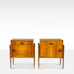 66x57x33 cm. anni 60 coppia di comodini in legno, metallo verniciato ed ottone