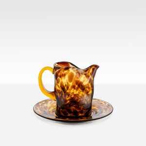 h. 19 cm. - d. 29,5 cm. Murano, anni 80 caraffa con piatto in vetro tartarugato