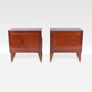 55x62x35 cm. anni 50 coppia di comodini in legno, ottone e marmo
