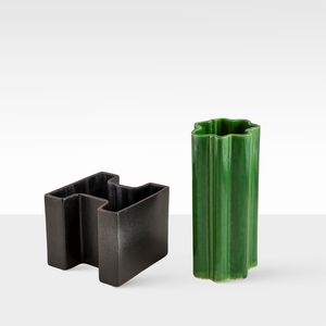 13x15,5x15,5 - 25x12,5x11 cm. anni 70 coppia di vasi in ceramica colorata