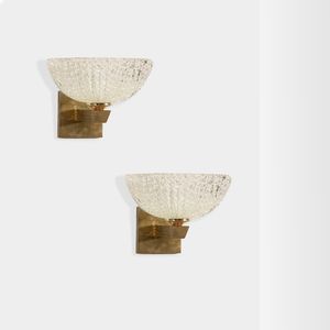 19x27x25 cm. anni 60 coppia di lampade da parete in ottone e vetro trasparente